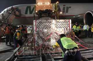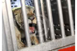 MÉXICO, D.F.09MAYO2013.- Tres leonas, procedente de Alabama, arribaron al aeropuerto de la Ciudad de México en un avion de carga para ser trasladadas al zoologico African Safari en el estado de Puebla. SAÚL LÓPEZ /CUARTOSCURO.COM