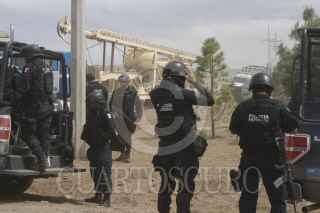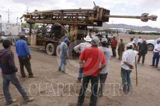 CIUDAD JUÁREZ, CHIHUAHUA, 10MAYO2013.- Personal de la Comisión Nacional del Agua (Conagua) y de varias dependencias del gobierno estatal, realizaron un operativo para evitar se siga extrayendo agua de manera ilegal en la zona de Sueco. Gobierno del estado informó que en este operativo se decomisaron 5 maquinas perforadoras y equipo de bombeo y extracción de agua, utilizados por los agricultores del lugar. Con esta incautación se impedirá que continúe la extracción de agua fuera del marco de la ley y el desgaste de los mantos freáticos, que afecta la recarga de los mismos, lo que aunado a la falta de precipitaciones pluviales, ocasiona severos daños a las zonas rurales y urbanas. FOTO: NACHO RUÍZ /CUARTOSCURO.COM