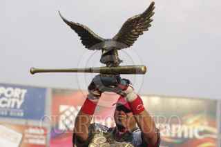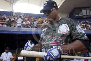 OAXACA, OAXACA, 11MAYO2013.- Japhet Amador, primera base de Diablos Rojos de México se alzó como el máximo cañonero en el Derby de Home Runs "Nelson Barrera" de la edición 2013 que tiene como sede el estadio Eduardo Vasconcelos casa de los Guerreros de Oaxaca. Amador venció en la final a Bárbaro Cañizares de los Guerreros, dos cuadrangulares a uno. Asimismo, el derby de mascotas fue ganado por Rocco de los Diablos Rojos. FOTO: ARTURO PÉREZ ALFONSO /CUARTOSCURO.COM