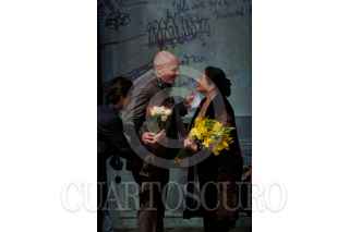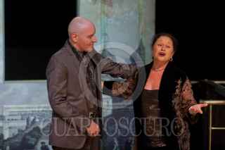 MÉXICO, D.F, 14MAYO2013.- Interpretando a Mario Iván Martínez, con más de seis meses de dar vida al burócrata Axenty Ivanovich Poprishkin, en el teatro Helénico, ayer mudó su presentación al Foro cultural Chapultepec la obra teatral Diario de un loco, de Nikolai Gogol. Para ello fueron invitadas como madrinas a la periodista Carmen Aristegui, la cantante Eugenia León, y la Actriz Angelica Aragón. FOTO: JUAN PABLO ZAMORA /CUARTOSCURO.COM