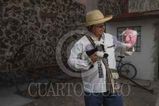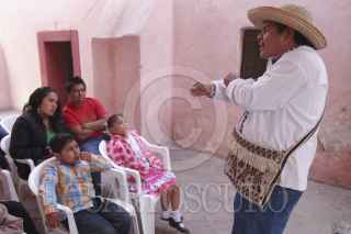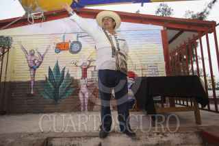 FRANCISCO I. MADERO, HIDALGO 14MAYO2013.- El maestro Mario Ángeles Herrera, egresado de la generación de 1978 de la desaparecida Escuela Normal Rural del Mexe, se ha dedicado profesionalmente desde hace 25 años a realizar Cuenta Cuentos en lengua Ñañu también conocida como Otomí, con la finalidad de acercar la cultura y fortalecer la tradición oral y las leyendas regionales del Valle del Mezquital, que es donde realiza sus presentaciones, principalmente en comunidades de esta lengua. Para "hacerle al cuento" (como el lo describe) en sus presentaciones solo ocupa las palabras y algunos artículos teatrales, dependiendo el público, pues lo mismo asisten niños que adultos, campesinos y maestros. FOTO: JUAN PABLO ZAMORA /CUARTOSCURO.COM