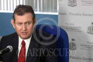 GUADALAJARA, JALISCO, 14MAYO2013.- Después de dos meses del asesinato del secretario de Turismo de Jalisco, El Fiscal General del Estado, Luis Carlos Nájera Gutiérrez de Velasco, confirmó la detención de cuatro personas presuntamente involucradas en la muerte de Jesús Gallegos Álvarez. Los cuatro detenidos confesaron su participación en el asesinato de Gallegos en marzo pasado y narraron cómo ocurrió a través de un video que mostró la fiscalía durante una conferencia de prensa encabezada por el titular, Luis Carlos Nájera. En el video, afirman que pertenecen al cártel Jalisco Nueva Generación. Gallegos Álvarez, empresario del ramo de la construcción y turismo, fue asesinado nueve días después de asumir su cargo como parte del equipo del equipo de trabajo del gobernador priista Aristóteles Sandoval (2013-2018). Los detenidos son Jonathan García García (Jonh Perro), Carlos Muñoz Morales (El Tilico), Juan Manuel González Martínez (El Piojo) y Julio Andrés Vázquez Estrada (El Padrino). FOTO: CORTESÍA /CUARTOSCURO.COM