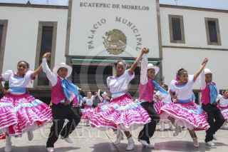 ECATEPEC, ESTADO DE MÉXICO. 15MAYO2013.- Maestros y alumnos pertenecientes a la organización Antorcha Campesina, se manifestaron realizando un bailable en la explanada de Ecatepec, para exigirle al presiente municipal apoye al sector educativo y mejore el presupuesto para escuelas en la entidad. FOTO: SAÚL LÓPEZ /CUARTOSCURO.COM