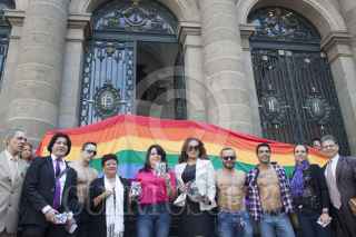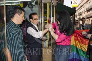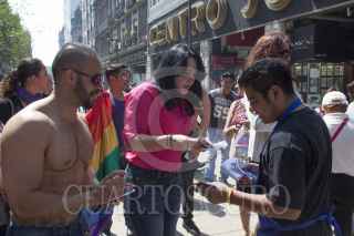 MÉXICO, D.F., 17MAYO2013.- Dinorah Pizano, presidenta de la Comisión de Derechos Humanos en ALDF, encabezó el arranque de la campaña del Día Internacional de la Lucha contra la Homofobia, la cual partió del Zócalo a las escalinatas de la ALDF, en el recorrido se repartieron volantes, pulseras y condones alusivos a este iniciativa. FOTOS: MOISÉS PABLO /CUARTOSCURO.COM