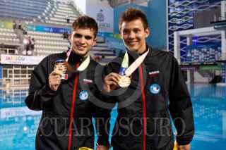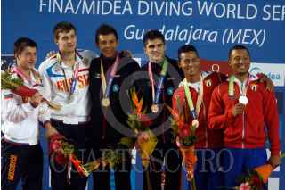 ZAPOPAN, JALISCO, 17MAYO2013.- Iván García y German Sánchez, obtuvieron medalla de oro en la prueba de Plataforma Sincronizada de 10 metros en la Serie Mundial de Clavados, que lleva a cabo en el Complejo Acuático Scotiabank de esta ciudad. FOTO: FERNANDO CARRANZA GARCÍA /CUARTOSCURO.COM