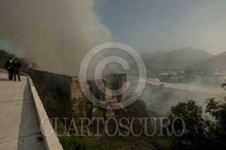 VILLA DE SANTIAGO, NUEVO LEÓN, 17MAYO2013.- Un incendio en una fábrica de textiles que data de 1871 en la comunidad del Cercado consumió todo el negocio. El lugar ya no estaba operando pero si contaba con maquinaria. No se reportaron lesionados. FOTO: GABRIELA PÉREZ MONTIEL / CUARTOSCURO.COM