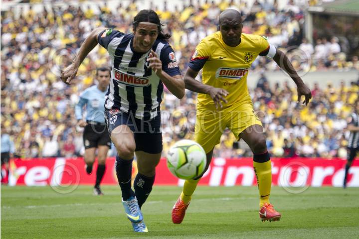 MÉXICO, D.F., 18MAYO2013.- Christian Benitez (América), durante el partido correspondiente de la semi final del Torneo Clausura 2013 de la Liga MX entre América y Monterrey, llevado acabo en el estadio Azteca. FOTO: MISAEL VALTIERRA / CUARTOSCURO.COM