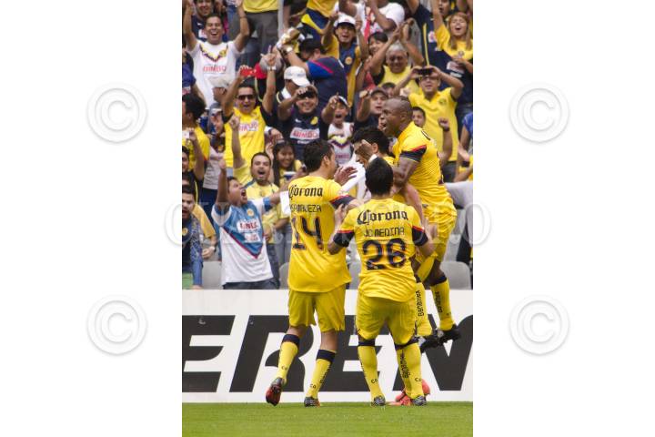 MÉXICO, D.F., 18MAYO2013.- Christian Benitez (América), durante el partido correspondiente de la semi final del Torneo Clausura 2013 de la Liga MX entre América y Monterrey, llevado acabo en el estadio Azteca. FOTO: MISAEL VALTIERRA / CUARTOSCURO.COM