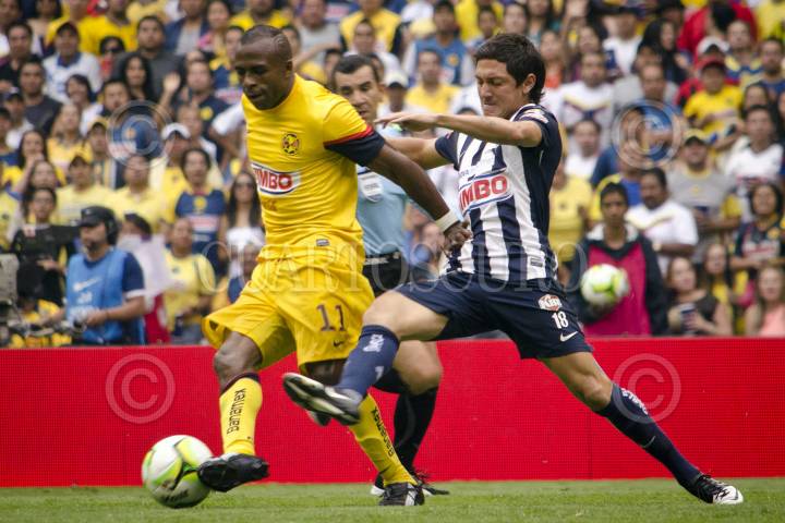 MÉXICO, D.F., 18MAYO2013.- Christian Benitez (América), durante el partido correspondiente de la semi final del Torneo Clausura 2013 de la Liga MX entre América y Monterrey, llevado acabo en el estadio Azteca. FOTO: MISAEL VALTIERRA / CUARTOSCURO.COM