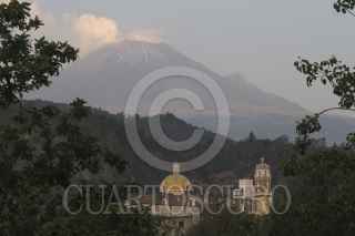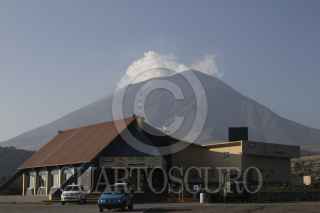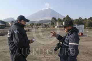PASÓ DE CORTES, PUEBLA, 19MAYO2013.- Personal de diversos cuerpos de seguridad y de Proteccion civil resguardan la zona que limita en los estados de México y Puebla. Al fondo se observa el volcan con la actividad mostrada el dia de hoy. FOTO: J GUADALUPE PERÉZ /CUARTOSCURO.COM
