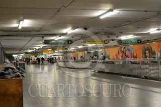 MÉXICO D.F., 19MAYO2013.- Fuerte movilización policiaca se registro en la estación del Metro Bellas Artes, ya que al interior de los baños fue detonado un petardo por lo que fue desalojado el anden de transbordo de la línea 8 a línea 2. Los responsables de este acto se dieron a la fuga e intentan ubicarlos a través de los videos de vigilancia de este servicio. FOTO: LUIS CARBAYO /CUARTOSCURO.COM