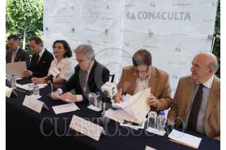 MÉXICO, D.F., 20MAYO2013.- En la instalaciones del Consejo Nacional de la Cultura y las Artes (CONACULTA) se llevó a cabo una conferencia sobre la participación de México con más de 30 escritores,editores y creadores en la Book Expo América en Nueva York, en la que asistieron, Ricardo Cayuela, Director General de Publicaciones del CONACULTA, José Luis Martínez, Director General de Asuntos de CONACULTA,Martha Cecilia Jaber, Director General de Cooperación Educativa y Cultural de la SRE, Rafael Tovar y de Teresa, Presidente del Consejo Nacional para la Cultura y las Artes, Ignacio Echeverría,Presidente de Cultura Nacional de la Industria Editorial Mexicana y Raul Zorrila; Comisario de Book Expo America. FOTO: ALEJANDRO NEYRA / CUARTOSCURO.COM