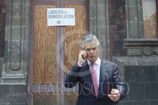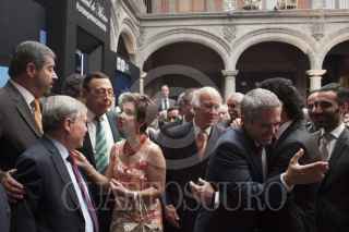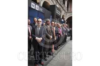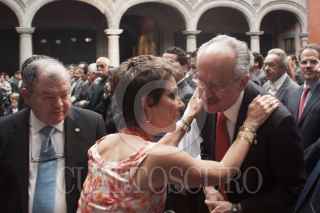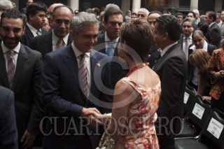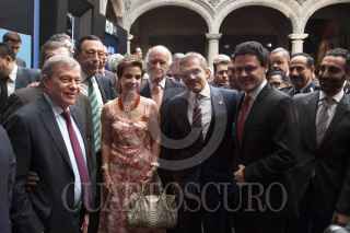 MÉXICO, D.F., 21MAYO2013.- Juan Ramón de la Fuente, ex-rector de la UNAM, Martha Sahagún, esposa del ex-presidente de México Vicente Fox, José Carral, presidente del Club de Industriales, Miguel Ángel Mancera, Jefe de Gobierno, el cantante Pedro Fernández, y Simón Levy, al finalizar la ceremonia de instalación del consejo consultivo Calidad de Vida Progreso y Desarrollo para La Ciudad de México, S.A. de C.V., en el Museo de la Ciudad. FOTO: MOISÉS PABLO /CUARTOSCURO.COM