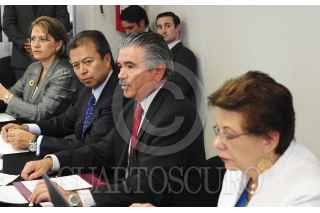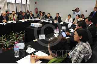 MÉXICO, D.F., 21MAYO2013.- César Camacho Quiroz, presidente del PRI, se reunió con Leonardo Valdés Zurita, presidente del IFE y consejeros en la sede del Instituto Federal Electoral. FOTO: CUARTOSCURO.COM