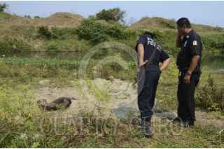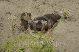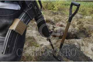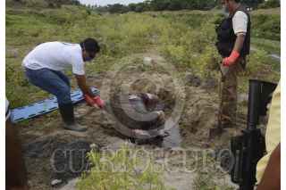 ACAPULCO, GUERRERO, 22MAYO2013.- Los cuerpos de dos personas semi enterradas fueron encontrados en un predio vecino de Punta Diamante colindando con la colonia de Llano Largo. Al lugar acudieron policías municipales y peritos quienes fueron llevados hasta el rio de la sabana por policías federales quienes indicaron donde estaban los cuerpos. Las victimas tenían las manos atadas y tenían el tiro de gracia, los cuales fueron trasladados al servicio médico forense en calidad de desconocidos. FOTO: BERNANDINO HERNÁNDEZ /CUARTOSCURO.COM