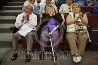 MÉXICO, D.F., 22MAYO2013.- Personas de la tercera edad asistieron a la ceremonia de entrega de 838 tarjetas del programa "Nueva vida a los 68", como parte de la Pensión Alimentara a los adultos mayores en la delegación Iztapalapa. FOTO: ADOLFO VALTIERRA /CUARTOSCURO.COM