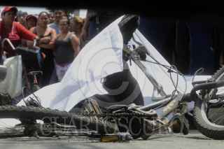 NEZAHUALCOYOTL, ESTADO DE MÉXICO, 23MAYO2013.- Un Hombre de aproximadamente 50 años, pierde la vida atropellado por un camión de carga el cual se dio a la fuga dejando al hombre que viajaba en su bicicleta sin vida, en calle Lago Frio y Av. Aeropuerto colonia Ciudad Lago municipio de Nezahualcoyotl. FOTO: LUIS CARBAYO /CUARTOSCURO.COM
