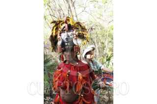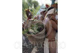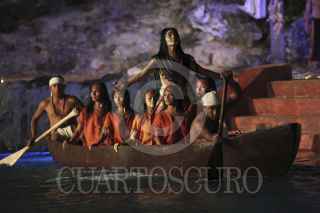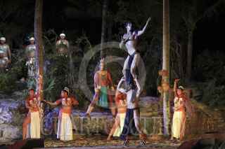 XCARET, QUINTANA ROO, 23MAYO2013.- Con la representación de de danzas y bailes se inicio esta noche la séptima travesía sagrada maya 2013 donde el día de mañana 300 canoeros saldrán de Xelha hacia la isla de Cozumel, que consiste en recorrer en balsa según los antiguos mayas y llegar a honrar a la diosa Ixchel. FOTO: ELIZABETH RUIZ /CUARTOSCURO.COM