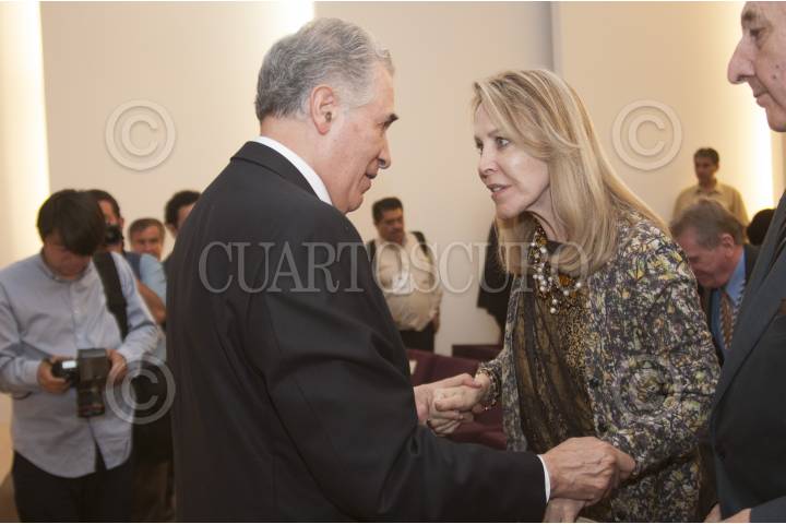 MÉXICO, D.F., 23MAYO2013.- Silvia Lemus, viuda de Fuentes se acerca a la fotografía del escritor Carlos Fuentes que falleció un 15 de Mayo del año pasado y que hoy la Academia Mexicana de la Lengua le rindió un homenaje postumo, al la asesión solemne acudieron, las escritoras Margo Glantz, y Gudalupe Loaeza. FOTO: FRANCISCO RODRÍGUEZ /CUARTOSCURO.COM