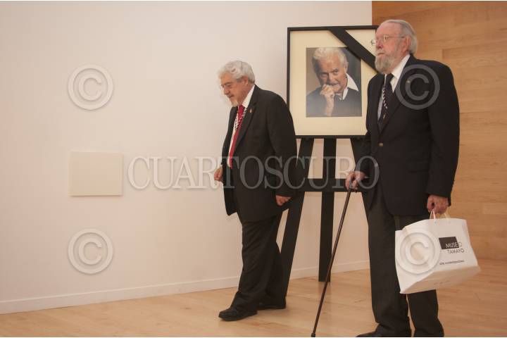 MÉXICO, D.F., 23MAYO2013.- Silvia Lemus, viuda de Fuentes se acerca a la fotografía del escritor Carlos Fuentes que falleció un 15 de Mayo del año pasado y que hoy la Academia Mexicana de la Lengua le rindió un homenaje postumo, al la asesión solemne acudieron, las escritoras Margo Glantz, y Gudalupe Loaeza. FOTO: FRANCISCO RODRÍGUEZ /CUARTOSCURO.COM
