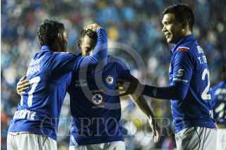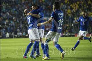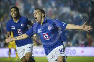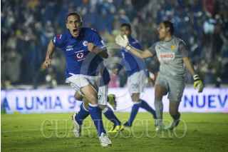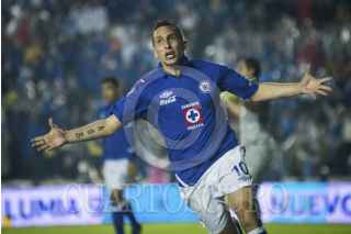 MÉXICO, D.F., 23MAYO2013.- Christian Giménez (Cruz Azul), festeja el primer gol del partido correspondiente a la ida de la Final del Torneo Clausura 2013 de la Liga MX, entre Cruz Azul en contras del América y llevado acabo en el estadio Azul. FOTO: MISAEL VALTIERRA / CUARTOSCURO.COM
