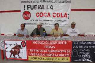 MORELIA, MICHOACAN, 24 DE MAYO DE 2013.- Habitantes de la colonia El Toreo, dieron a conocer que continuaran con acciones para evitar que la empresa trasnacional Coca-Cola Company extraiga agua de los mantos acuíferos de la colonia El Toreo ubicada a las orillas de Morelia. Los inconformes han colocados mantas e iniciado una campaña para que la refresquera reubique sus instalaciones en algún otro lugar del estado. FOTO: SAÚL LÓPEZ /CUARTOSCURO.COM