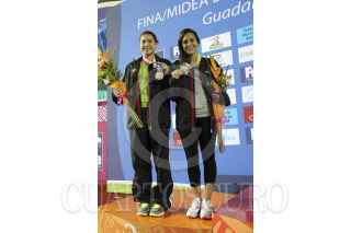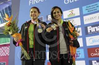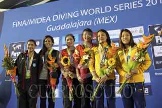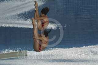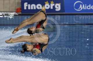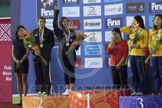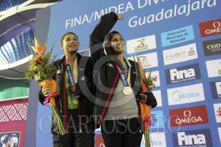 ZAPOPAN, JALISCO, 24MAYO2013.- Esta tarde se llevaron a cabo las finales de Clavados Sincronizados en Trampolín de 3 metros Femenil, en donde las Chinas Zi He y Hang Wang se llevaron la medalla de oro, las Mexicanas Paola Espinoza y Dolores Hernández la de plata, así como Yan Yee Ng y Jun Hoong Cheong de Malasia la de bronce. FOTO: FERNANDO CARRANZA GARCÍA /CUARTOSCURO.COM