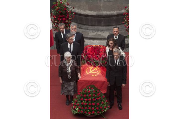 MÉXICO, D.F., 25MAYO2013.- Mara Robles, Secretaría de Educación del Gobierno del Distrito Federal, Salvador Martínez Della Rocca, Martha Recasens, viuda de Arnoldo Martínez Verdugo, y Marisela Contreras, delegada de Tlalpan, durante el homenaje de cuerpo presente a Martínez Verdugo que se le realizó en el Museo de la Ciudad de México. El político y ultimo presidente del Partido Comunista murió a los 88 años. FOTO: MOISÉS PABLO /CUARTOSCURO.COM