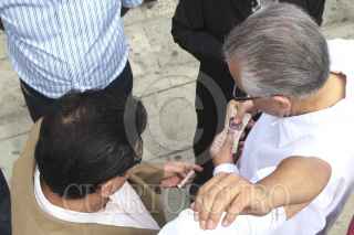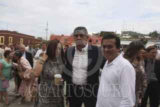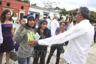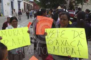 OAXACA, OAXACA, 25MAYO2013.- Indígenas zapotecas provenientes de la región del Istmo de Tehuantepec se manifestaron en el atrio del ex Convento de Santo Domingo de Guzmán en la ciudad de Oaxaca en contra del ex gobernador de Oaxaca y actual coordinador Ejecutivo del Consejo Rector del Pacto por México, José Murat Casab. En el templo se llevó a cabo el bautizo y primera comunión de sus nietas Ivette, Alexa, Emilia Murat Morán. Juan Díaz Pimentel, ex secretario de Salud en la administración de Murat Casab (1998 - 2004) ofreció 10 mil pesos en efectivo a las manifestantes para retirarse. FOTO: ARTURO PÉREZ ALFONSO /CUARTOSCURO.COM