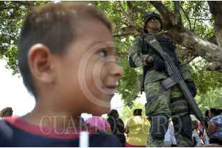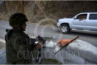 TIERRA CALIENTE, MICHOACAN, 26MAYO2013.- La asistencia social, policial y militar ha llegado a los municipios michoacanos de Buenavista, Tepalcatepec y Coalcoman, sin embargo los miembros de los grupos de autodefensa señalan que se mantendrán hasta que los cabecillas de los Caballeros Templarios desaparezcan y que se garantice la seguridad para poder salir de sus comunidades a otros sitios del estado. FOTO: ALAN ORTEGA /CUARTOSCURO.COM
