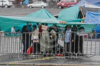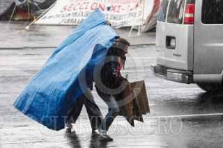 MÉXICO, D.F., 27MAYO2013.- Continúan las tardes lluviosas en la ciudad de México, y en el campamento de maestros y otras organizaciones en el Zocalo, estos se cubren del agua como pueden. FOTO: ISAAC ESQUIVEL /CUARTOSCURO.COM