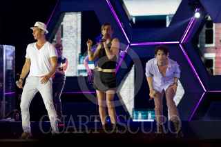 ACAPULCO, GUERRERO 27MAYO2013.-Sasha, Benny, Erik exintegrantes de Timbiriche, durante su presentación en el Jardín Sur del Centro de Convenciones en el marco del Festival Acapulco 2013. FOTO: JUAN PABLO ZAMORA /CUARTOSCURO.COM