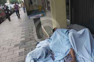 VILLAHERMOSA, TABASCO, 28MAYO2013.-Cuatro menores de edad tienen como su hogar las banquetas en las afueras de la sucursal bancaria Banorte ubicada en la calle Francisco I. Madero, de la colonia Centro. Estas personitas que dormían como lirón cerca de las diez de esta mañana, se tapan con unas telas azules y se olvidan del bullicio y trajín por encontrarse en situación de calle y sin que alguna autoridad tome carta en el asunto. FOTO: MARCO POLO GUZMÁN HERNÁNDEZ/CUARTOSCURO.COM