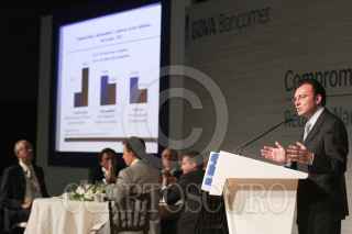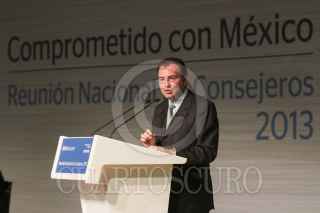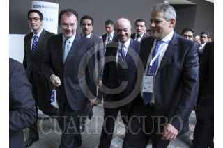 MÉXICO, D.F., 28MAYO2013.- Luis Videgaray, Secretario de Hacienda y Crédito Público; Francisco González Rodríguez, Presidente del Grupo BBVA; y Luis Robles Miaja, Presidente del Consejo de Administración de BBVA Bancomer; a su salida de la Reunión Nacional de Consejeros BBVA Bancomer 2013. FOTO: ADOLFO VALTIERRA /CUARTOSCURO.COM