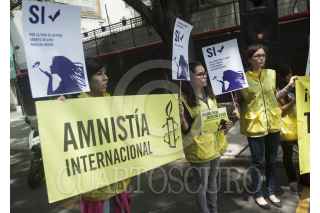 MÉXICO, D.F., 29MAYO2013.- Integrantes de organizaciones sociales y de Amnistía Internacional protestaron a las afueras de la embajada de El Salvador en apoyo a que se pueda interrumpir el embarazo de Beatriz, una mujer salvadoreña de 22 años quien padece lupus, tiene un hijo de un año de edad y actualmente se encuentra embarazada de un feto anencefalico (sin cerebro) que no tiene posibilidades de vivir. FOTO: RODOLFO ANGULO / CUARTOSCURO.COM