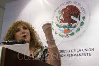 MÉXICO, D.F., 29MAYO2013.- La senadora Luz María Beristain del PRD, ofreció una conferencia de prensa ante los medios de comunicación para dar su postura oficial ante el incidente en el cual estuvo involucrada el día de ayer con la aerolínea VivaAerobus la noche de ayer. En sus manos portaba una hoja que decía "Disculpa publica con Sencillez" la cual leyo en la conferencia. FOTO: ENRIQUE ORDÓÑEZ /CUARTOSCURO.COM