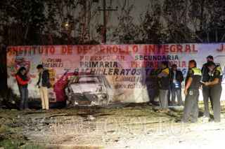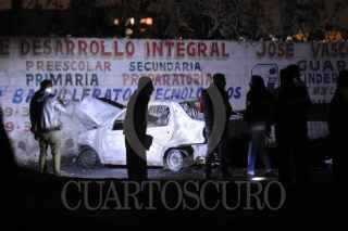 ECATEPEC, ESTADO DE MÉXICO, 30MAYO2013.- El cuerpo de una persona, fue hallado sin vida al interior de la cajuela de un auto compacto que fue calcinado en el lugar conocido como Las Vías y San Isidro, colonia Lázaro Cárdenas. Personal policiaco, acudió al lugar para resguardar el vehículo del que se desconocen características para que posteriormente fuera trasladado al Ministerio Publico en esta demarcación FOTO: LUIS CARBAYO /CUARTOSCURO.COM