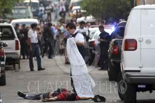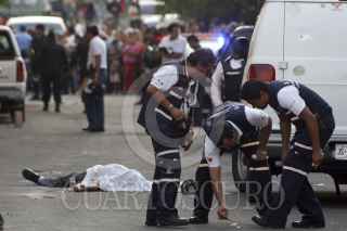 GUADALAJARA, JALISCO, 30MAYO2013.- La tarde de ayer dos hombres fueron asesinados a balazos en la colonia Santa Elena de la Cruz, el hecho se registro en las calles Eleuterio Quiroz al cruce con Cuenca, en el lugar se encontraron cascajos de los calibres .9 milímetros y calibre .40. Al lugar acudió personal de la Fiscalía General del Estado, así como del Instituto Jalisciense de Ciencias Forenses, quienes se encargaron de realizar el levantamiento de los cuerpos para trasladarlos hasta el Servició Medico Forense para realizarles la necropsia de ley. FOTO: CUARTOSCURO.COM