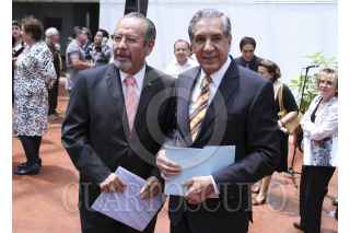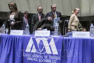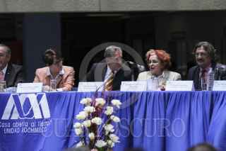 MÉXICO, D.F., 30MAYO2013.- Iris Santacruz Fabila, Secretaria General de la UAM; René Avilés Fabila, escritor, periodista y catedrático; María Luisa "La China" Mendoza, escritora; y Hugo Enrique Sáez, investigador UAM-Xochimilco; durante el homenaje en la Universidad Autónoma Metropolitana Unidad Xochimilco (UAM-Xochimilco), con motivo de sus 50 años como creador literario. FOTO: ADOLFO VALTIERRA /CUARTOSCURO.COM