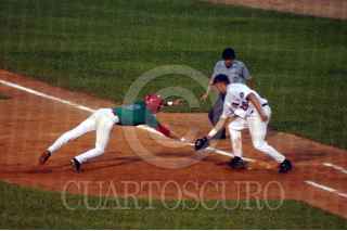 VILLAHERMOSA,TABASCO.-06SEPTIEMBRE2005.- Bajo la lluvia se efectúa el encuentro de la quinta ronda entre los selectivos nacionales de México contra USA, donde el partido se encuentra empatado a cero en el inicio de la segunda entrada. FOTO: Marco Polo Guzmàn/CUARTOSCURO.COM