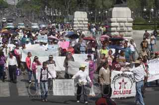 MÉXICO, D.F., 31MAYO2013.- Integrantes del Comité de Lucha y Defensa (Colude) marcharon del Hemiciclo a Juárez al Zócalo para pedir se paguen los salarios 2012-2013 a maestros de primaria en escuelas del municipio de Ecatepec, además de exigirle al gobernador Eruviel Avila inversión en escuela de educación básica que presentan deficiencias en servicios e infraestructura, los inconforme afectaron por unos minutos la circulación de avenida Juárez. FOTO: MOISÉS PABLO /CUARTOSCURO.COM
