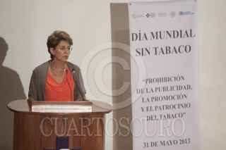 MÉXICO, D.F., 31MAYO2013.- La Secretaria de Salud Mercedes Juan durante su discurso en la ceremonia Día Mundial Sin Tabaco "Prohibición de la Publicidad la Promoción y el Patrocinio del Tabaco" en el Hospital General de México. En el acto se develó una placa conmemorativa de la creación de la "Unidad de Clínica contra el Tabaco" Dr. Raúl Cicero Sabido. FOTO: MOISÉS PABLO /CUARTOSCURO.COM