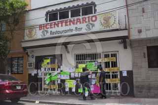 MÉXICO, D.F., 31MAYO2013.- La fachada del Bicentenario Restaurante Bar y que en su interior se ubica el llamado after "Heaven" ha sido tapizada por carteles en donde se busca a los 12 jóvenes que supuestamente fueron extraídos por un comando de este lugar el domingo pasado por la madrugada. También se observan los sellos de la Procuraduría General de Justicia del DF los cuales fueron colocados por el delito de privación ilegal de la libertad, en su fachada se observan dos cámaras que están en desuso, al lugar llegan curiosos, se sabe que dos los padres de dos de estos jóvenes purgan condenas por el delito de crimen organizado. FOTO: MOISÉS PABLO /CUARTOSCURO.COM