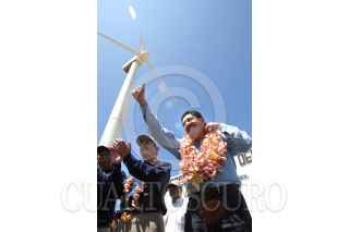 JUCHITAN,OAXACA.-06SEPTIEMBRE2005.- El gobernador del estado de Oaxaca Ulises Ruiz Ortiz, el Secretario de Energia, Bernardo Barragan Elizondo y el Director General de la CFE, Alfredo Elias Ayub, dieron inicio en la agencia municipal de La Venta, en Juchitan, Oaxaca; al proyecto denominado La Venta II, el más importante en el país por la generación de 83.3 megawatts de corriente alterna a través de 90 aerogeneradores, en el cual se prevé una inversión de casi 112 millones de dólares. FOTO: Carlos Salinas /CUARTOSCURO.COM