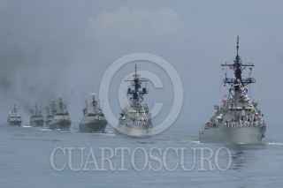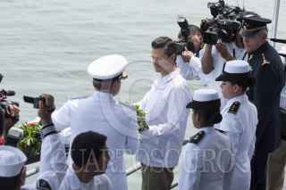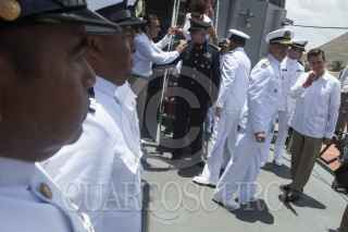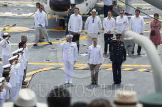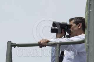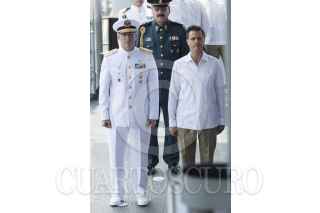 TAPACHULA, CHIAPAS, 01JUNIO2013.- El presidente Enrique Peña Nieto, acompañado de Vidal Soberon Sanz, secretario de Marina y Salvador Cienfuegos, secretario de la Defensa Nacional durante la conmemoración del Día de la Marina que se realizó en Puerto Chiapas. FOTO: RODOLFO ANGULO /CUARTOSCURO.COM