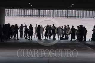 MÉXICO, 01JUNIO2013.- La porra univeristaria de la Rebel, ensaya a las puertas del Estadio Olimpico México 68, las piezas que interpreta con regularidad durante los partidos de futbol y en los cuales alienta al público a cantar y animar al los PUMAS durante los encuentros de futbol cada Domingo. FOTO: FRANCISCO RODRÍGUEZ /CUARTOSCURO.COM