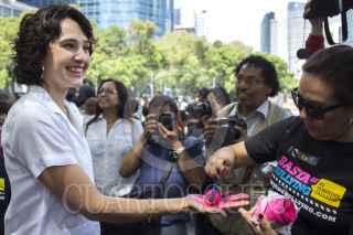 MÉXICO, D.F., 02JUNIO2013.- Tanya Müller, secretaria de Medio Ambiente durante el Arranque de la campaña 2013 “Basta de bullying. No te quedes callado”.¡ que tuvo lugar a un costado del Ángel de la Independencia. FOTO: ENRIQUE ORDÓÑEZ /CUARTOSCURO.COM