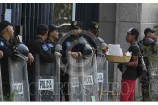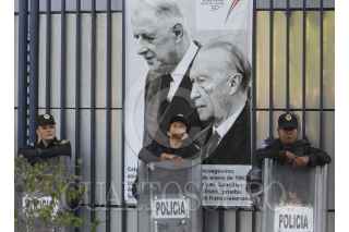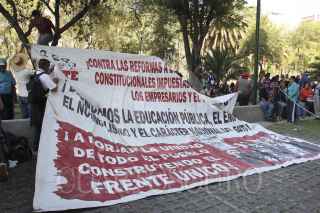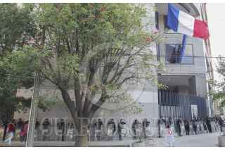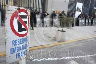 MÉXICO, D.F., 03JUNIO2013.- Maestros de la Sección 22 de Oaxaca se manifestaron frente a las instalaciones de la embajada de Francia para exigir que empresarios extranjeros no intervengan en las decisiones en la educación de México. Granaderos de SSP-DF, resguardaron el inmueble FOTO: SAÚL LÓPEZ /CUARTOSCURO.COM
