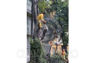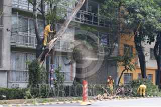 MÉXICO, D.F., 04JUNIO2013.- Trabajadores del Gobierno del Distrito Federal podan las ramas de algunos arboles que están por caerse o que se enredan con cables de los postes ubicados sobre Eje 2 Sur Juan Escutia, colonia Condesa. FOTO: DIEGO SIMÓN SÁNCHEZ / CUARTOSCURO.COM