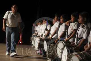 OAXACA, OAXACA, 04JUNIO2013.- Profesores de nueve secciones del Sindicato Nacional de los Trabajadores de la Educación (SNTE) que forman parte de la disidencia sindical participaron en el 2o Foro Regional sobre la Reforma Educación, mismo que se llevó a cabo en el teatro Álvaro Carrillo de la ciudad de Oaxaca. En la imagen jóvenes estudiantes del nivel primaria que integran una banda de guerra participan en este foro en donde se discute un tema importante acerca del futuro de la educación del país. FOTO: ARTURO PÉREZ ALFONSO /CUARTOSCURO.COM